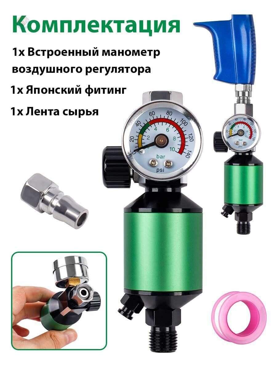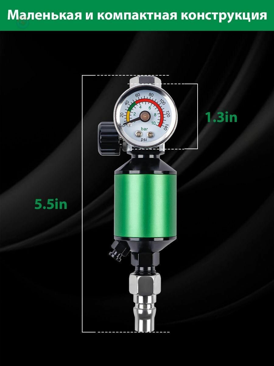 Регулятор давления воздуха с манометром, фильтр-влагоотделитель 1/4 дюйма для компрессора и краскопульта HVLP, алюминиевый корпус, точная регулировка 1-9 кг/см: сравнение цен, характеристики, фото, актуальное наличие и цены.