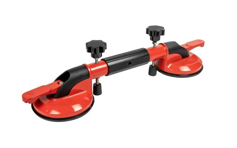 DLT P622- струбцина с двумя присосками для стягивания плит и выравнивания шва между плитами, а также регулировки их высоты для выставления плитки в одной плоскости. Используется для сближения и фиксации наружных и внутренних углов керамогранита, искусственного или натурального камня, заготовок из кварцевого агломерата, керамики, пластмассовых панелей, стекла и др.