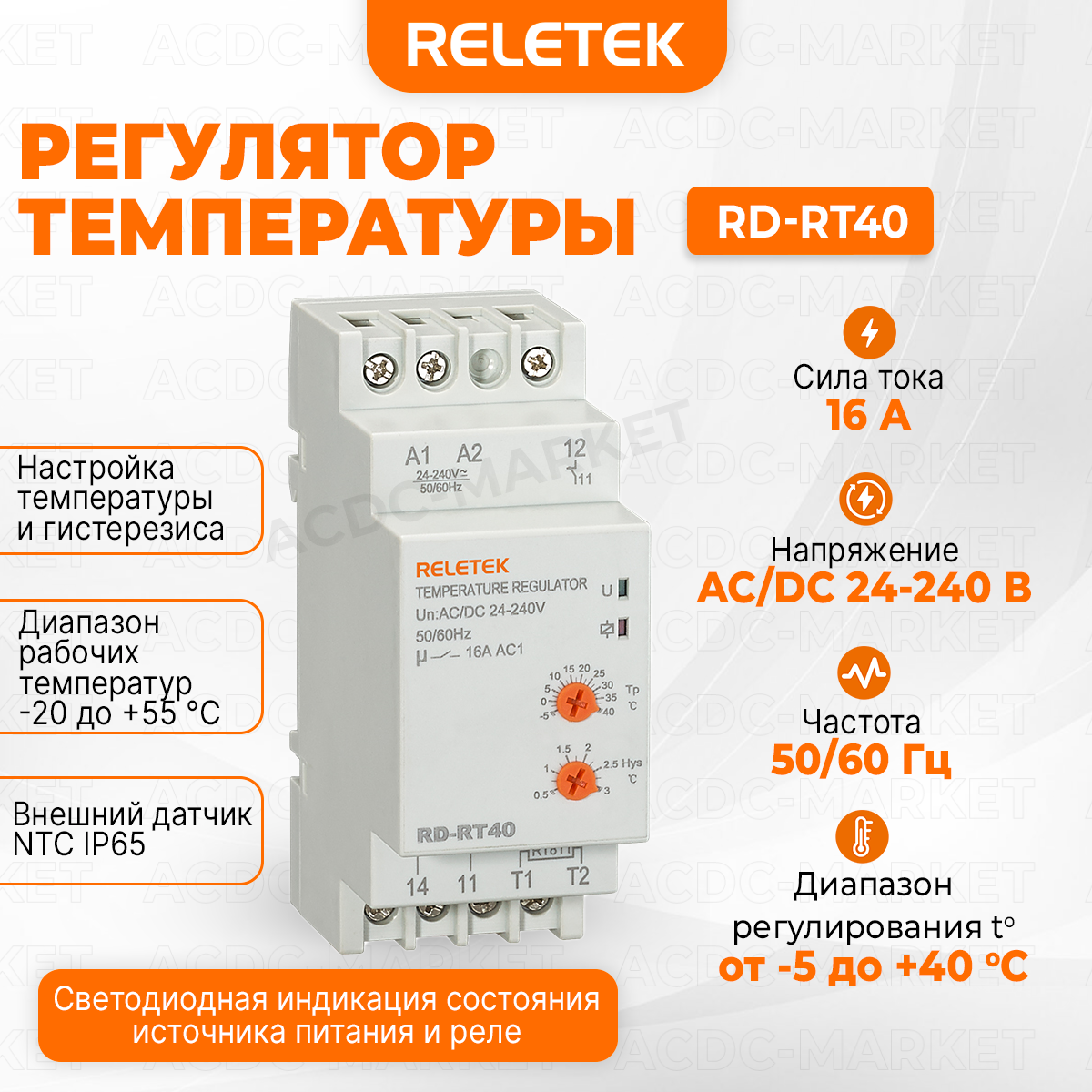 Купить Регулятор температуры RD-RT40 RELETEK, в комплекте с термодатчиком. с доставкой по всей России. Регулятор температуры RD-RT40 RELETEK, в комплекте с термодатчиком.: сравнение цен, характеристики, фото, актуальное наличие и цены.