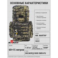 Тактический (рейдовый) рюкзак для дальних походов объемом около 70 (+15) литров Mr. Martin 5022 в американской камуфляжной расцветке "AcuPat" (Аку/серый пиксель). При необходимости объем рюкзака легко можно увеличить на 13-15 литров: для этого на фронтовой стороне вдоль боков и дна проходит опоясывающая молния, при расстегивании которой рюкзак расширяется примерно на 10 см, увеличиваясь в объеме примерно до 85 литров. Идеален для походов средней и дальней продолжительности, охоты, рыбалки.