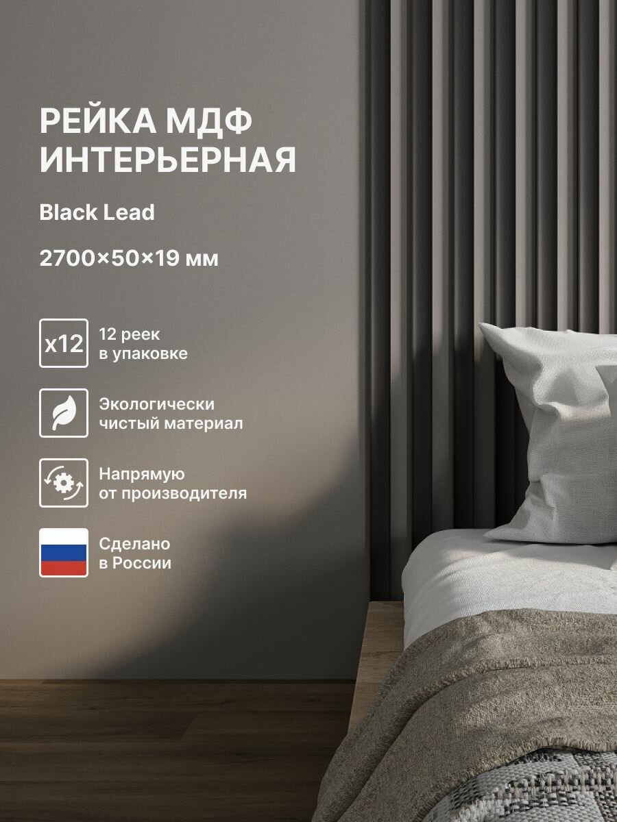 Рейка интерьерная МДФ декоративная, как деревянная; для стен, зонирования комнаты, для перегородки или потолка; Цвет Black Lead 2700*50*19 мм (упаковка 12 штук): сравнение цен, характеристики, фото, актуальное наличие и цены.