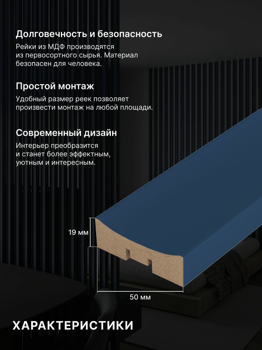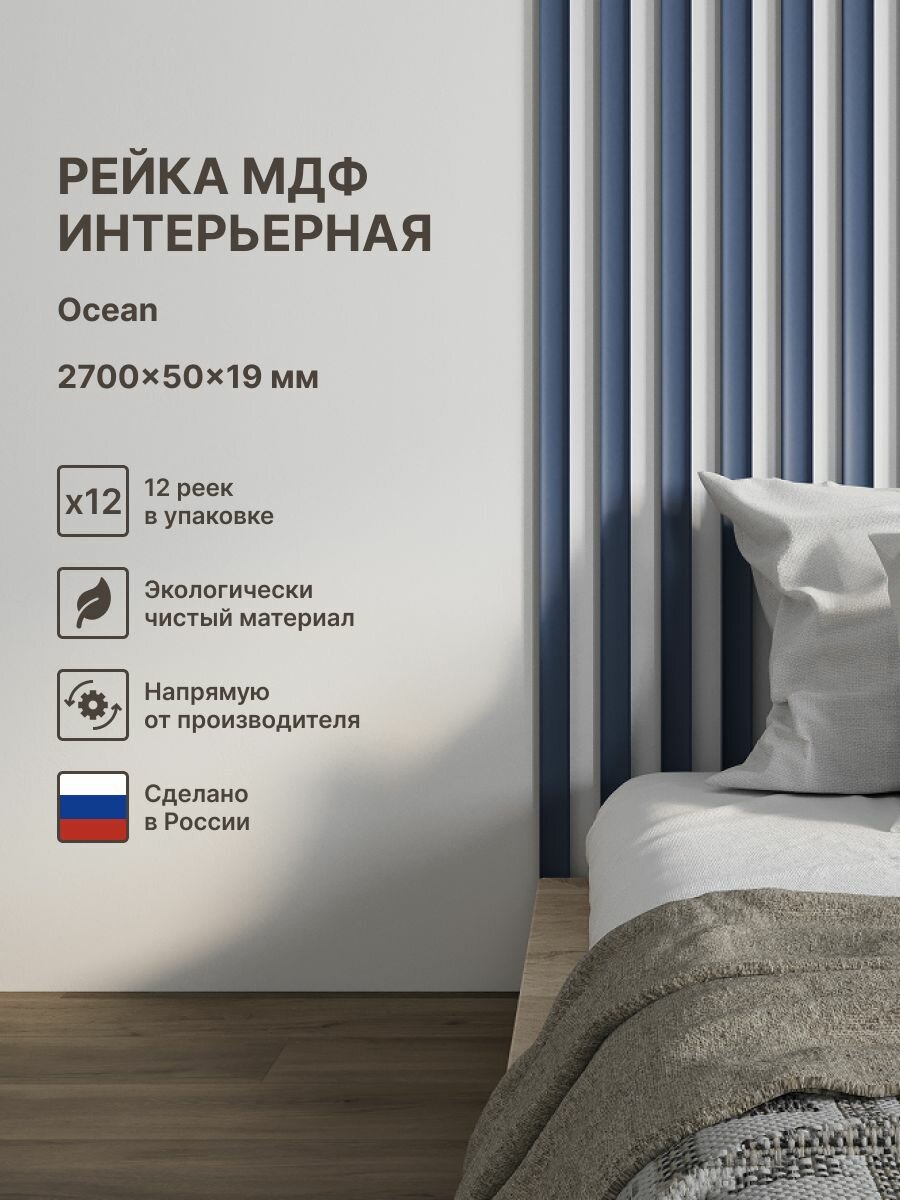 Рейка интерьерная МДФ декоративная, Цвет Ocean 2700*50*19 мм (упаковка 12 штук): сравнение цен, характеристики, фото, актуальное наличие и цены.