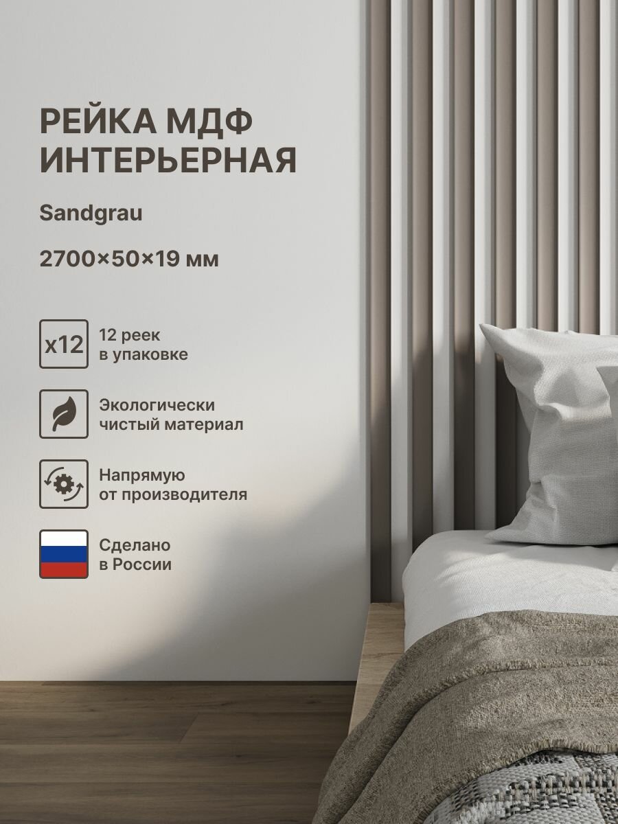 Stella Рейка интерьерная МДФ декоративная, как деревянная; для стен, зонирования комнаты, потолка, для перегородки или ниши; Цвет Sandgrau 2700*50*19 мм (упаковка 12 штук): сравнение цен, характеристики, фото, актуальное наличие и цены.