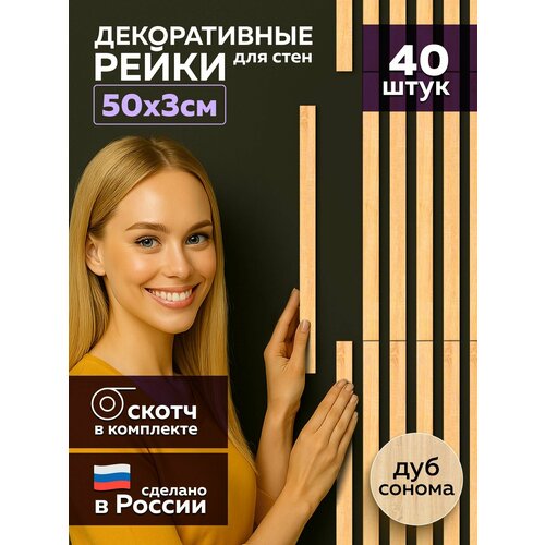 Рейки декоративные 50 х 3 см ХДФ, дуб сонома, 40 шт, самоклеящиеся для стен: сравнение цен, характеристики, фото, актуальное наличие и цены.