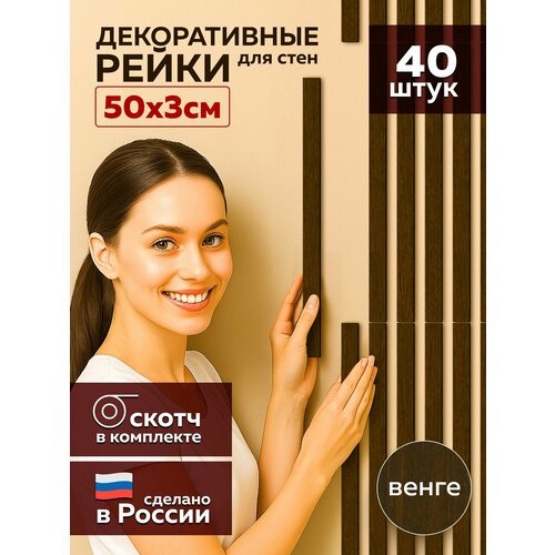Декоративные рейки ХДФ — идеальное решение для стильной отделки стен. В комплекте 40 штук, размер каждой — 50×3 см, покрывают около 1 м². Изготовлены из плотного ХДФ, легко монтируются благодаря двустороннему скотчу (входит в комплект). Не требуют инструментов, не оставляют пыли и мусора. Цвет венге — универсальный и современный. Отлично подойдут для зонирования пространства, визуального увеличения высоты потолков и маскировки дефектов стен.