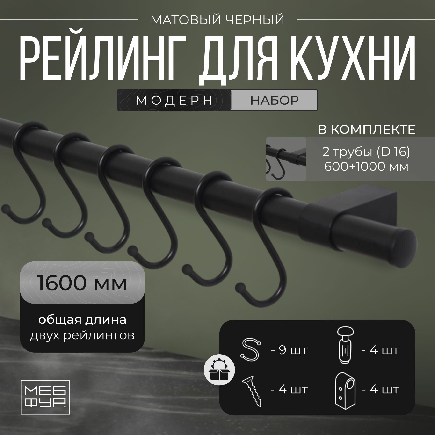 Купить Рейлинг 160 см «MOVEIS» для кухни с крючками черный матовый «модерн», в наборе две штанги 60 см и 100 см+ 9 крючков с доставкой по всей России. Рейлинг 160 см «MOVEIS» для кухни с крючками черный матовый «модерн», в наборе две штанги 60 см и 100 см+ 9 крючков: сравнение цен, характеристики, фото, актуальное наличие и цены.