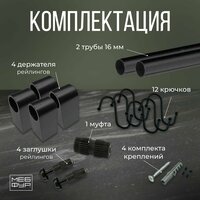 Купить Рейлинг 190 см «MOVEIS» для кухни с крючками черный матовый «модерн», в наборе две штанги 70 см и 120 см+ 12 крючков с доставкой по всей России. Рейлинг 190 см «MOVEIS» для кухни с крючками черный матовый «модерн», в наборе две штанги 70 см и 120 см+ 12 крючков: сравнение цен, характеристики, фото, актуальное наличие и цены.