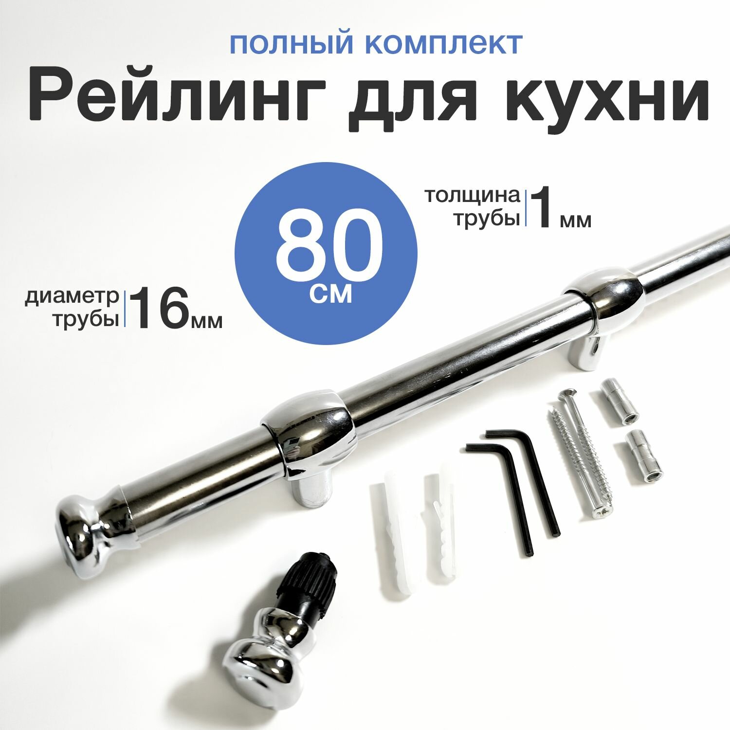 Рейлинг для кухни 80 см, хром/серебристый, труба 16 мм, полный комплект: сравнение цен, характеристики, фото, актуальное наличие и цены.