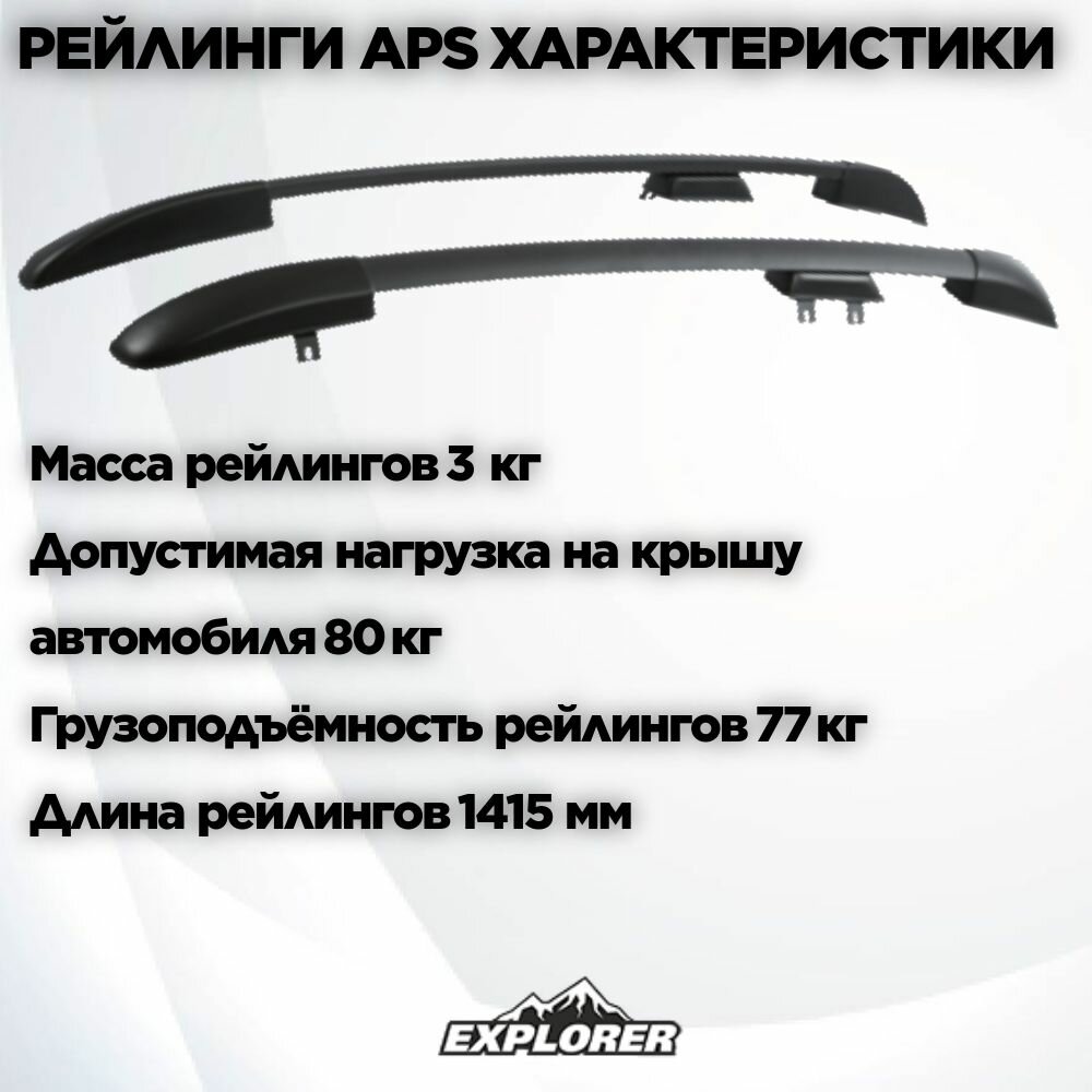 Конструкция рейлингов позволяет устанавливать багажники АПС (крепление "скоба") и других производителей в обхват алюминиевого профиля.