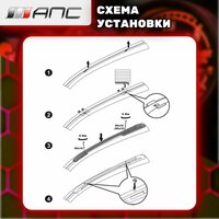 Способ установки – крепление в штатные места в кузове автомобиля (расположены под заглушками в молдингах водостоков крыши) при помощи винтового соединения, без приклейки к поверхности крыши.