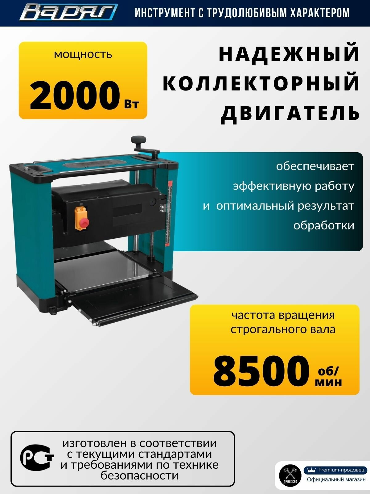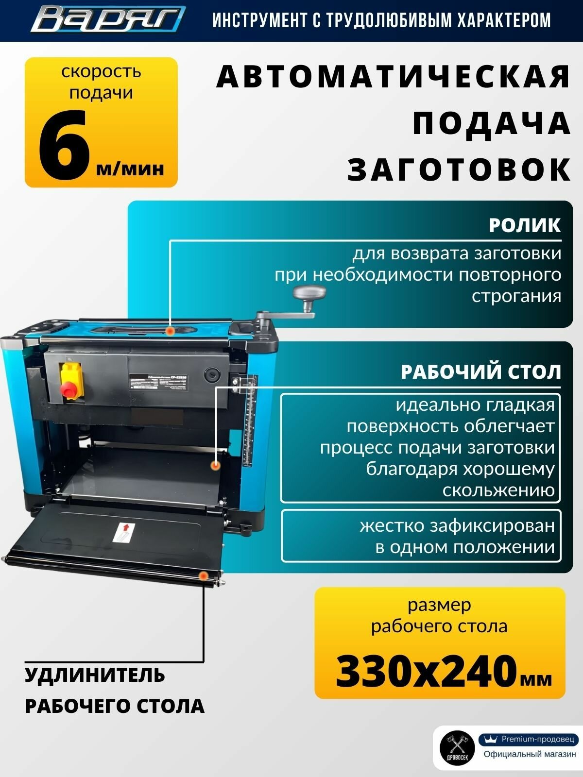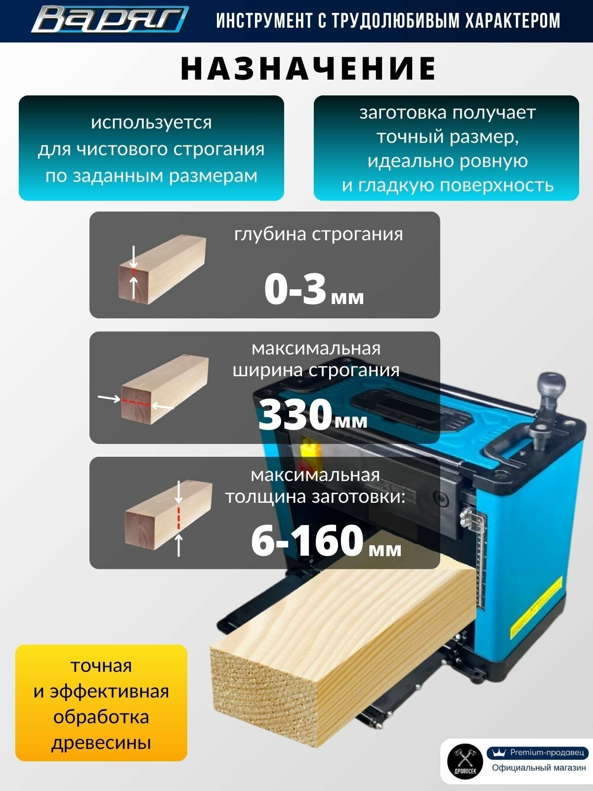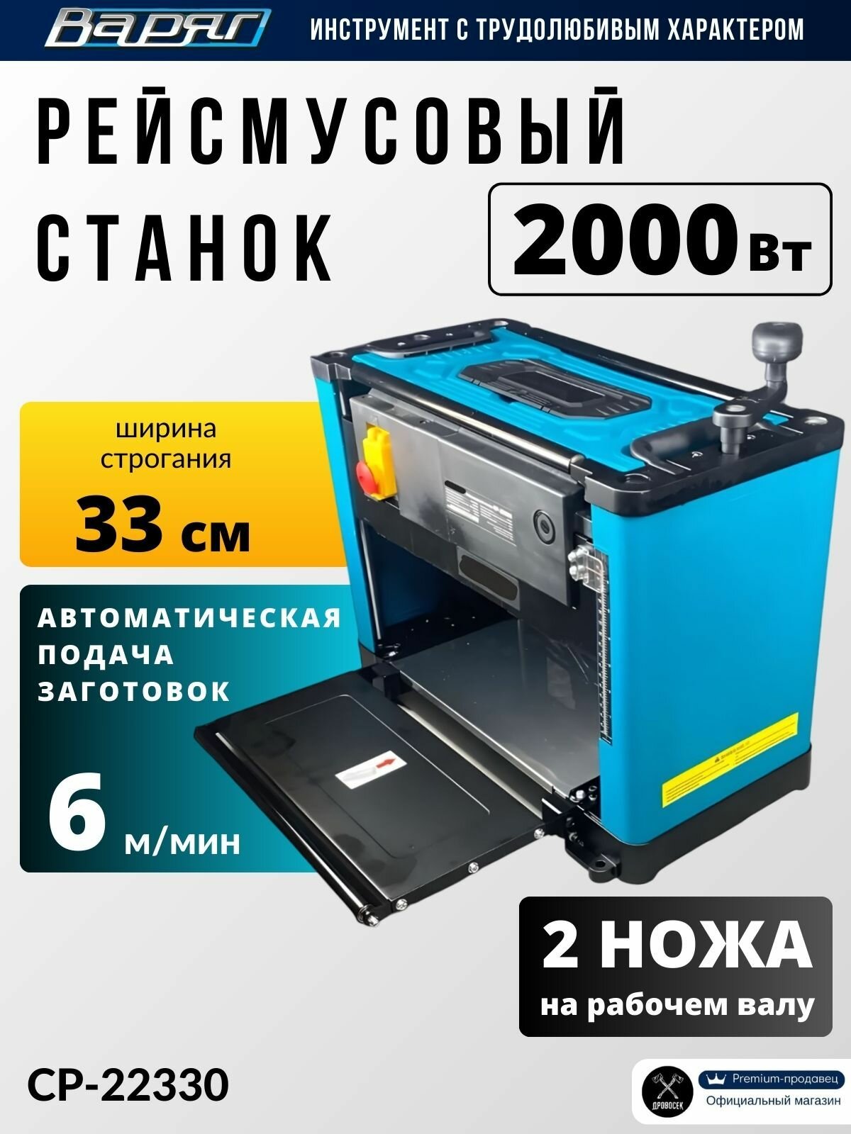 Рейсмусовый станок по дереву Варяг СР-22330 (2000Вт, 8500об/мин, ширина 330мм, высота 6-160мм, глубина 0-3мм): сравнение цен, характеристики, фото, актуальное наличие и цены.