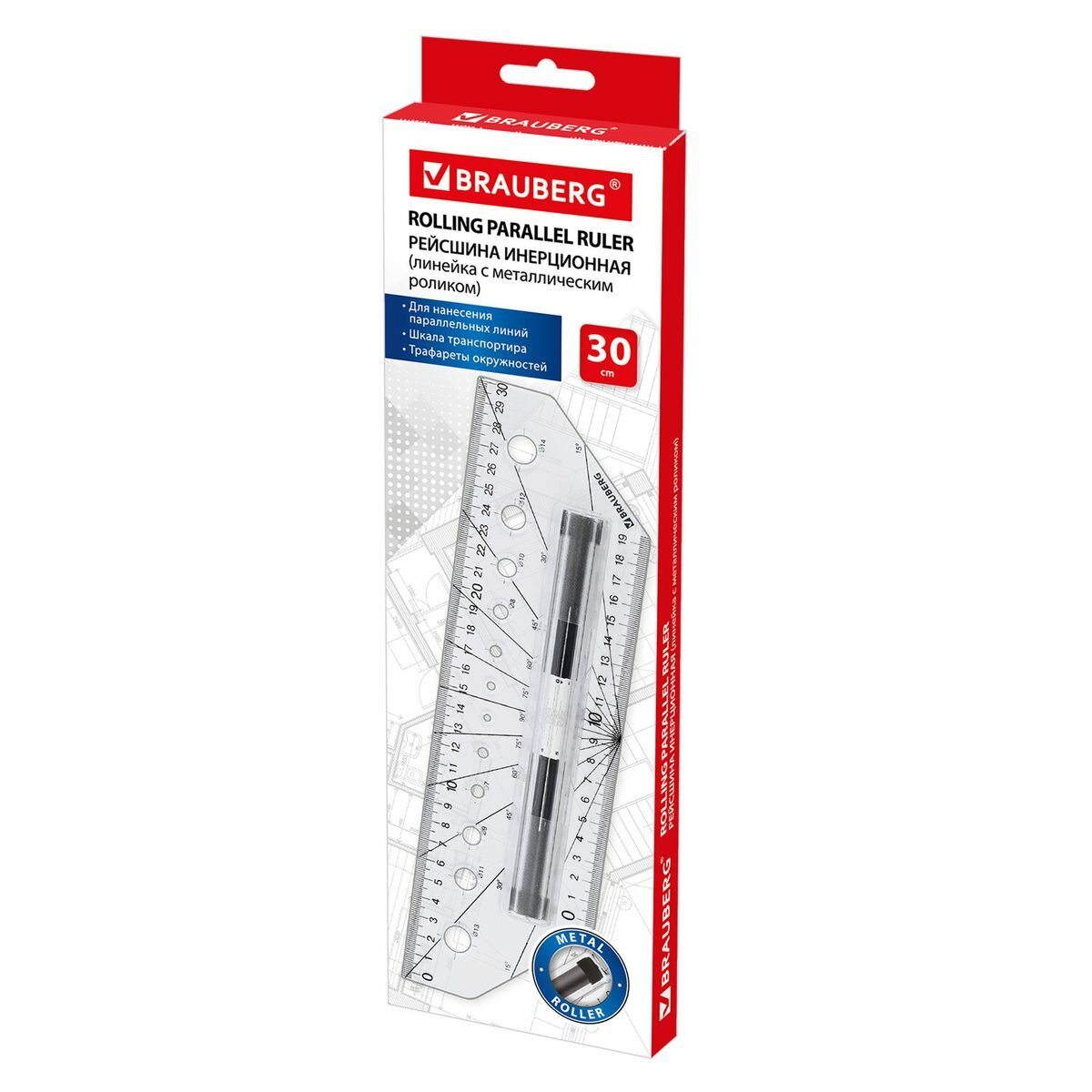 Рейсшина 30см Brauberg, металлический ролик, коробка с подвесом, 24шт. (210647): сравнение цен, характеристики, фото, актуальное наличие и цены.