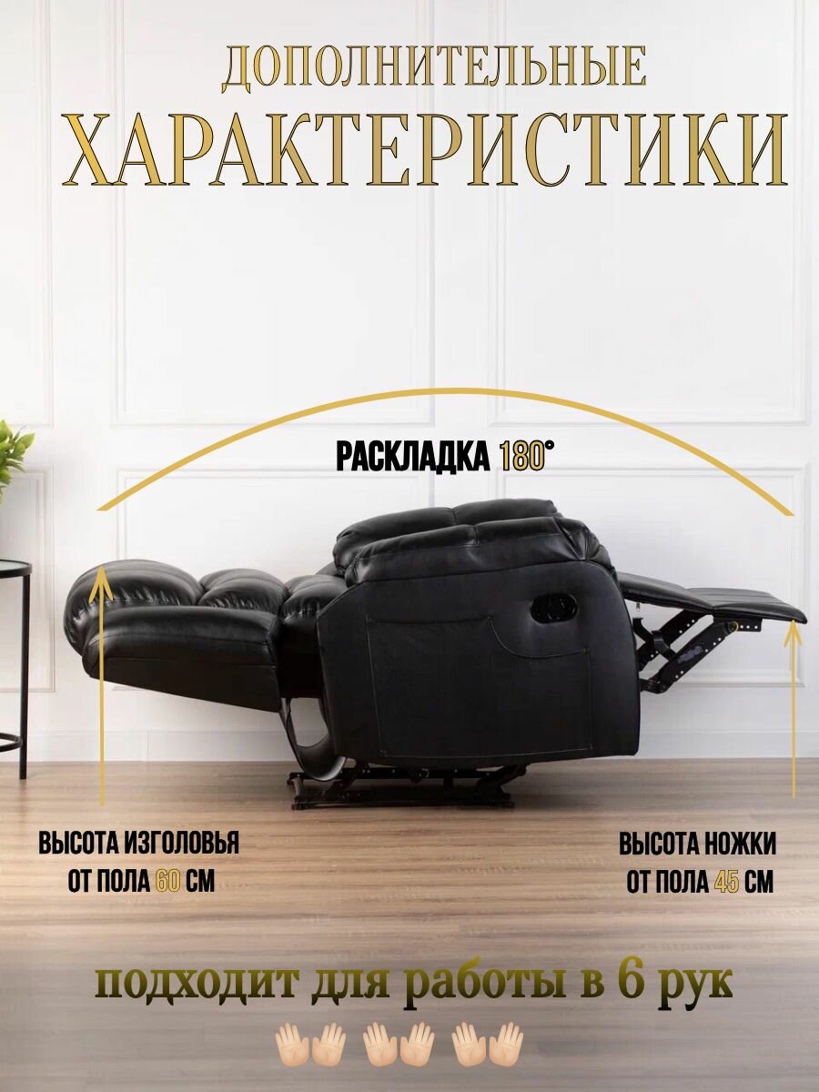 Электропривод кресла обеспечивает простоту и удобство управления. Даже если вы никогда раньше не пользовались таким функционалом, интуитивно понятный дизайн позволит вам быстро освоиться. Независимые моторы дают возможность адаптировать кресло конкретно под ваши потребности: захотите ли вы расслабиться после долгого дня или создать комфортное рабочее место — реклайнер вам в этом поможет.