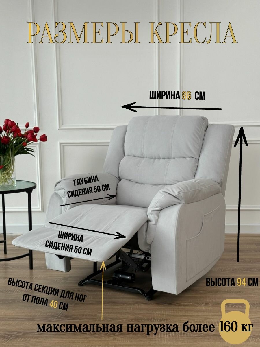 Откройте для себя непревзойденный комфорт и расслабление с двухмоторным электрическим креслом Реклайнер. Это кресло идеально подойдет для вашего дома, офиса или зоны отдыха, создавая великолепное ощущение уюта и удобства. Кресло выделяется благодаря своим уникальным возможностям и современному дизайну.