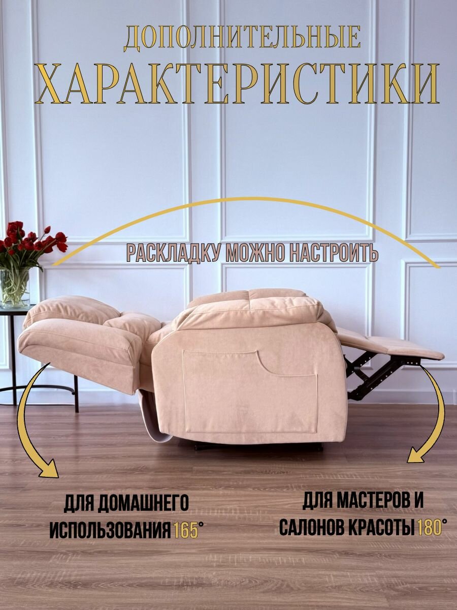 Двухмоторный реклайнер — это идеальный выбор для тех, кто ценит функциональность и комфорт. Небольшие детали, такие как удобные подлокотники и поддержка поясницы, делают это кресло настоящей находкой для салона красоты или вашего дома. Оно легко станет вашим любимым местом для чтения, просмотра телевизора или просто спокойного отдыха.