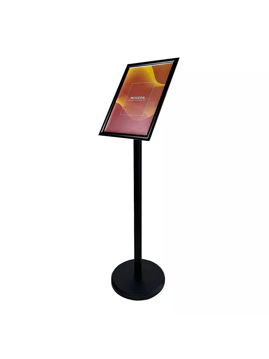 Рекламная стойка ALUSNAP-STAND поворотная, A3 Рекламная напольная поворотная стойка ALUSNAP-STAND черного цвета предназначена для демонстрации информационной вставки формата A3. Планшет, на который устанавливается вставка, оснащен клик-рамой, которая удерживает вставку и делает ее монтаж максимально простым и удобным. Поворотный механизм планшета позволяет менять его расположение в горизонтальном или вертикальном варианте на выбор. Угол наклона планшета 55 градусов для лучшего обзора информации.