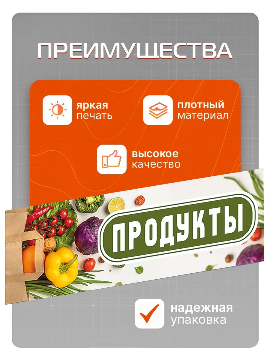 Рекламный баннер вывеска Продукты 300 см * 100 см, с люверсами и стяжками: сравнение цен, характеристики, фото, актуальное наличие и цены.
