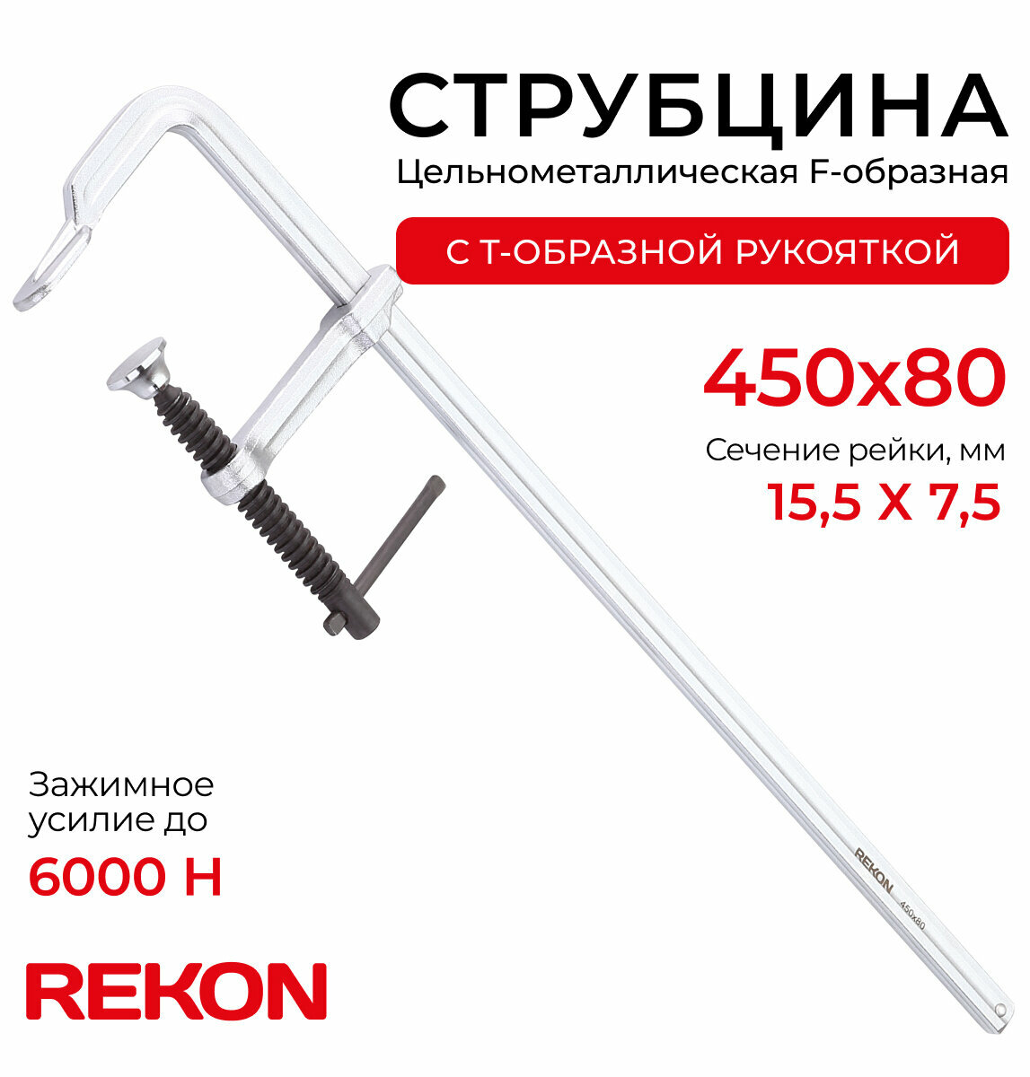 Купить REKON Струбцина RF01-450-80, цельнометаллическая, кованая, c Т-образной рукояткой с доставкой по всей России. REKON Струбцина RF01-450-80, цельнометаллическая, кованая, c Т-образной рукояткой: сравнение цен, характеристики, фото, актуальное наличие и цены.