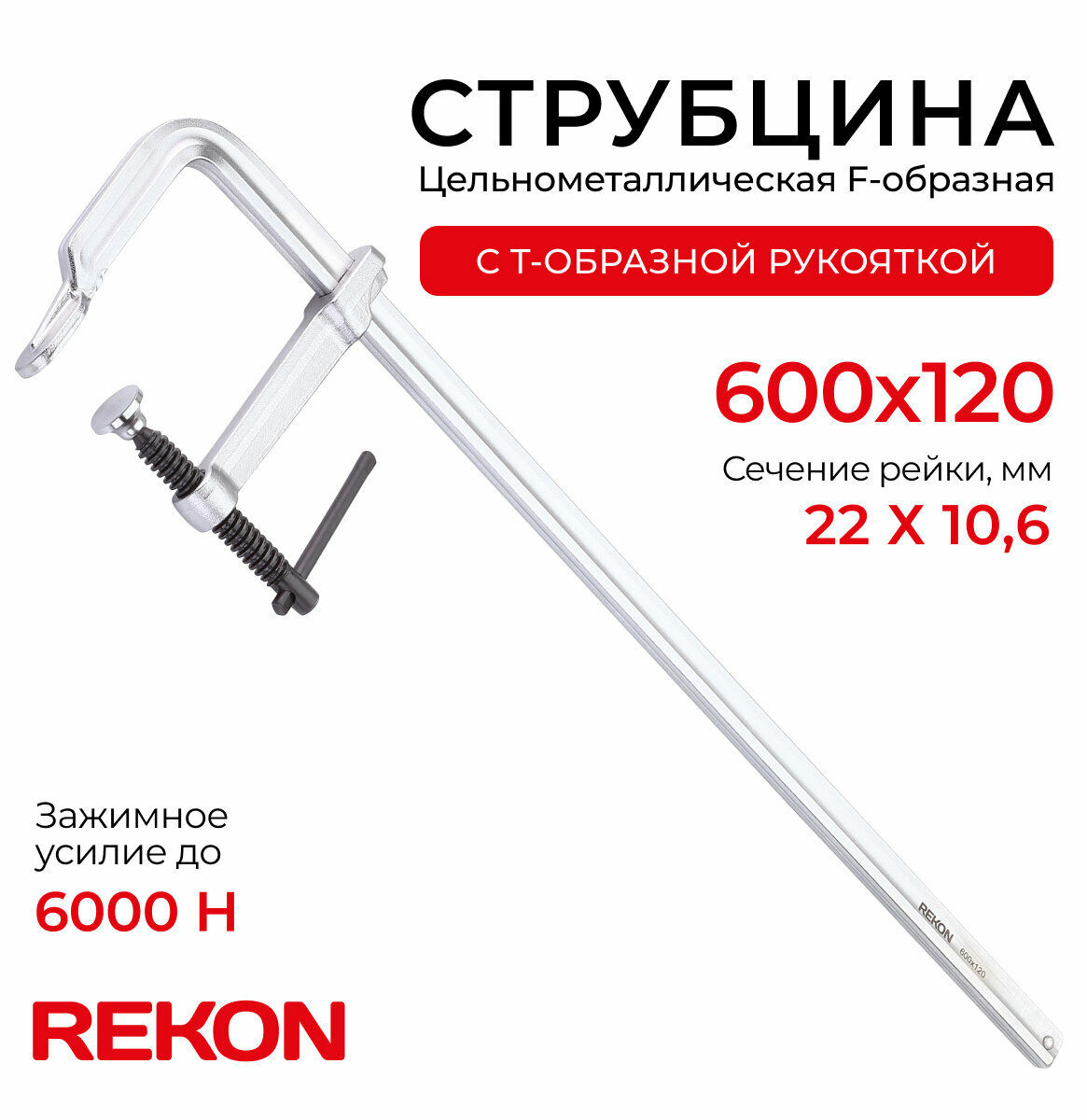Купить REKON Струбцина RF01-600-120, цельнометаллическая, кованая, c Т-образной рукояткой с доставкой по всей России. REKON Струбцина RF01-600-120, цельнометаллическая, кованая, c Т-образной рукояткой: сравнение цен, характеристики, фото, актуальное наличие и цены.