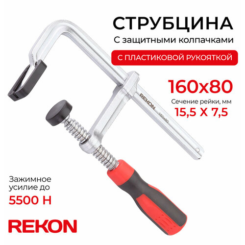 REKON Струбцина RF07-160-80 с защитными колпачками, цельнометаллическая с эргономичной рукояткой из пластика: сравнение цен, характеристики, фото, актуальное наличие и цены.