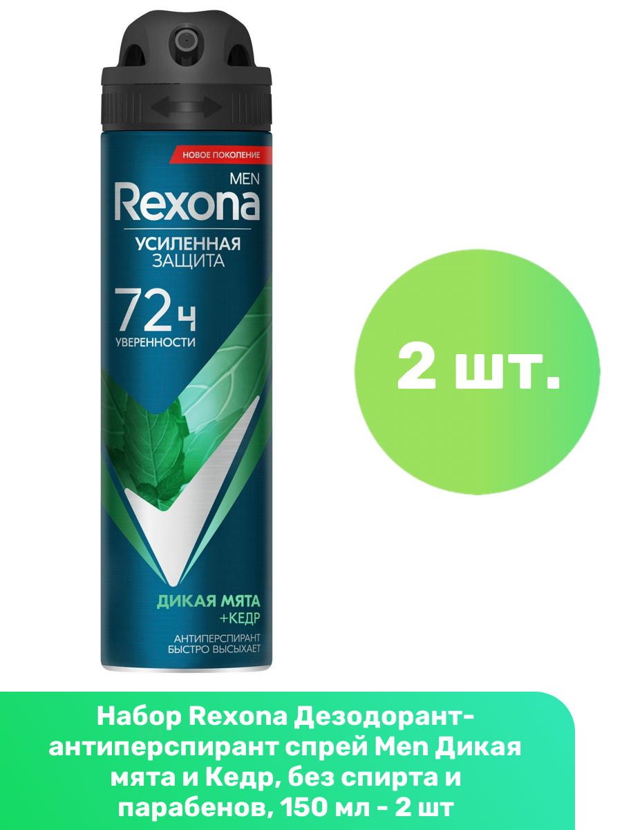 Rexona Дезодорант-антиперспирант спрей Men Дикая мята и Кедр, без спирта и парабенов, 150 мл — 2 шт: сравнение цен, характеристики, фото, актуальное наличие и цены.