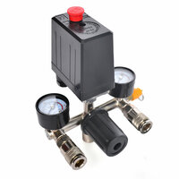 Реле давления оснащено двумя манометрами и редуктором давления, что позволяет регулировать рабочее давление, подаваемое на пневмоинструмент. Дополнительный манометр указывает текущее давление в ресивере, что обеспечивает удобство и точность работы.