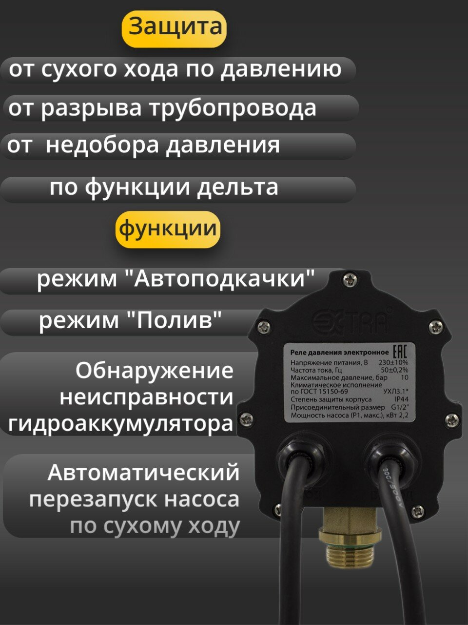 Акваконтроль Extra. РДЭ-Универсал-10-2,2 G 1/2. Реле давления воды для насоса.: сравнение цен, характеристики, фото, актуальное наличие и цены.