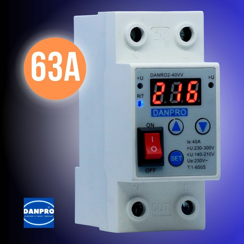 Купить Реле контроля напряжения DANRO2-63VV / Реле с защитой от перенапряжения, низкого напряжения с выключателем 63А / Защитное устройство на DIN рейку с доставкой по всей России.