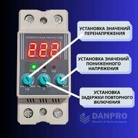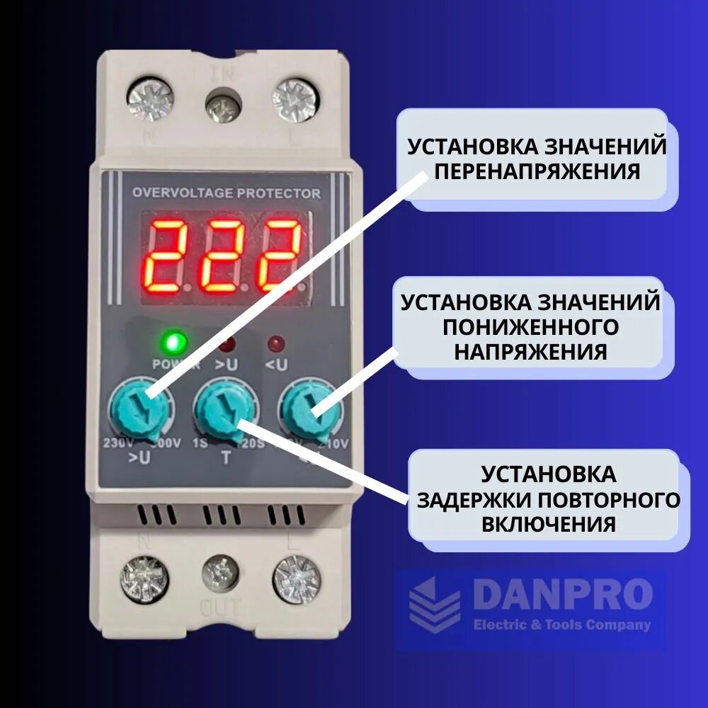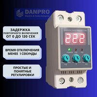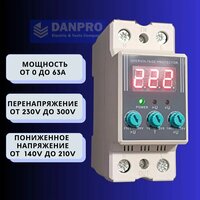 Реле контроля напряжения DANRO6-63A с защитой от перегрузки по току, перенапряжения и низкого напряжения 63 А / Защитное устройство на DIN рейку