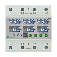 Реле контроля напряжения RV1.23 предназначено для защиты промышленного и бытового однофазного и трехфазного оборудования от повышенного или пониженного напряжения, пропадания, асимметрии, чередование фаз, обрыва нейтрали и перегрузки по току Реле отображает действующее значение фазного напряжения в сети, значение тока и состояние выходных контактов на лицевой панели. В случае перенапряжения, пониженного напряжения, пропадания, асимметрии, не правильном чередование фаз, обрыва нейтрали, превышения установленного значения тока, реле мгновенно (или с задержкой) отключит потребителя, чтобы предотвратить электрооборудование от повреждения. Автоматическое восстановление подключения потребителя с задержкой по времени после восстановления напряжения сети до нормального состояния. Перенапряжение и значения пониженного напряжения могут быть настроены самостоятельно. Реле контроля серии RV1.23 крепятся на 35-мм монтажную DIN-рейку