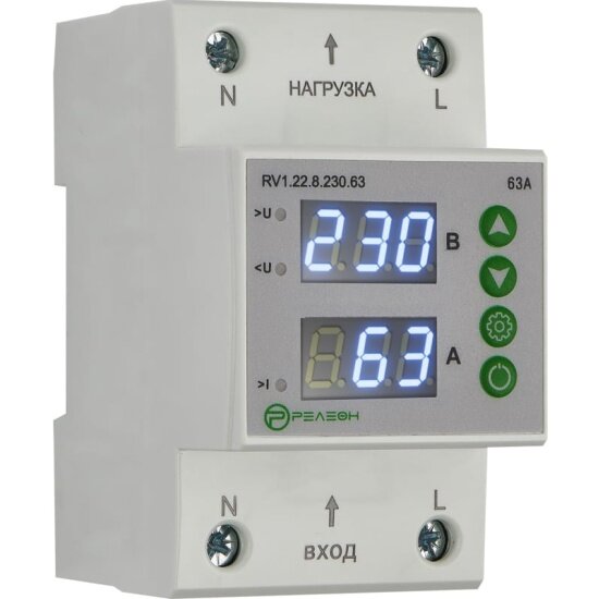Реле контроля напряжения и тока Релеон с разрывом нейтрали L+N (230В AC) 63А, RV122823063: сравнение цен, характеристики, фото, актуальное наличие и цены.