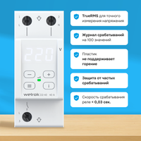 Welrok (Велрок) D2-40 используется в однофазных сетях переменного тока (230 В) для защиты оборудования от критических скачков напряжения и/или обрыва нулевого провода в сети. В случае возникновения аварийной ситуации - устройство своевременно отключит нагрузку. Когда значение напряжения вернется в норму, нагрузка будет автоматически включена обратно.