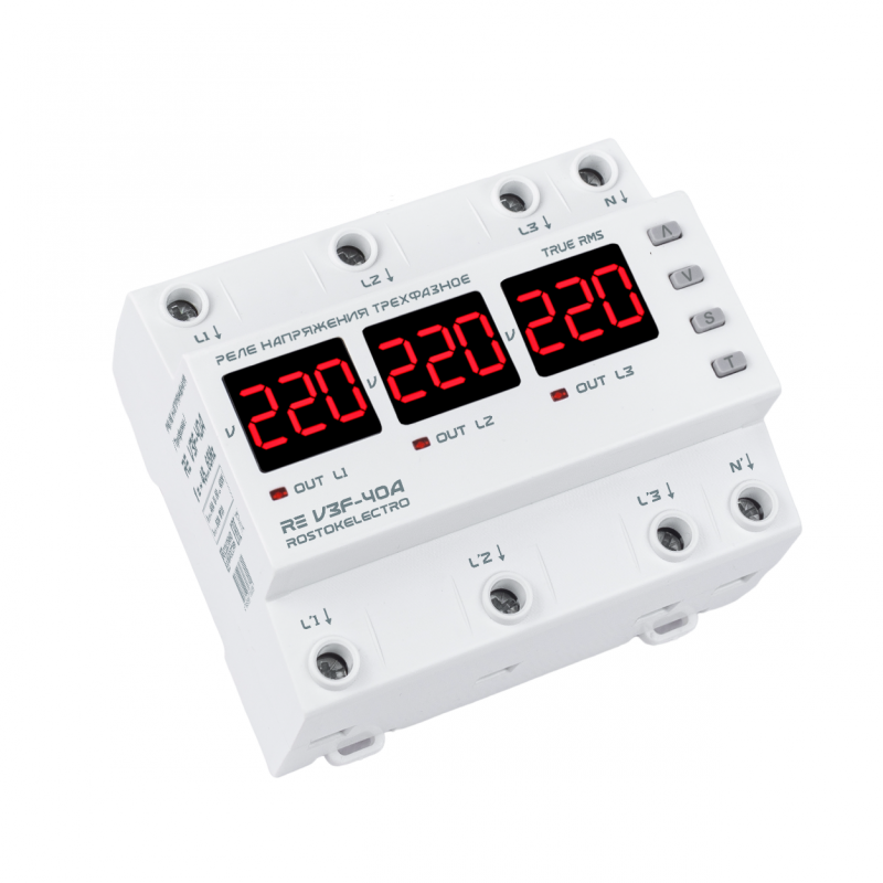 Реле напряжения 3ф 40А (50А max) RE V3F-40A 8800 ВАх3 (6мод) ROSTOKELECTRO: сравнение цен, характеристики, фото, актуальное наличие и цены.