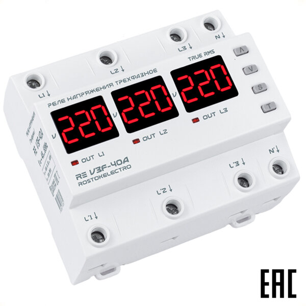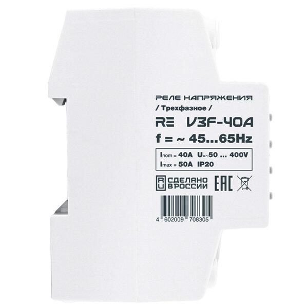Реле напряжения RE V3F-40A 380В Umin120-200В/Umax210-270В 40А 3P+N (Росток-Электро): сравнение цен, характеристики, фото, актуальное наличие и цены.