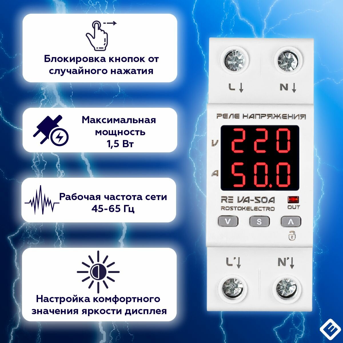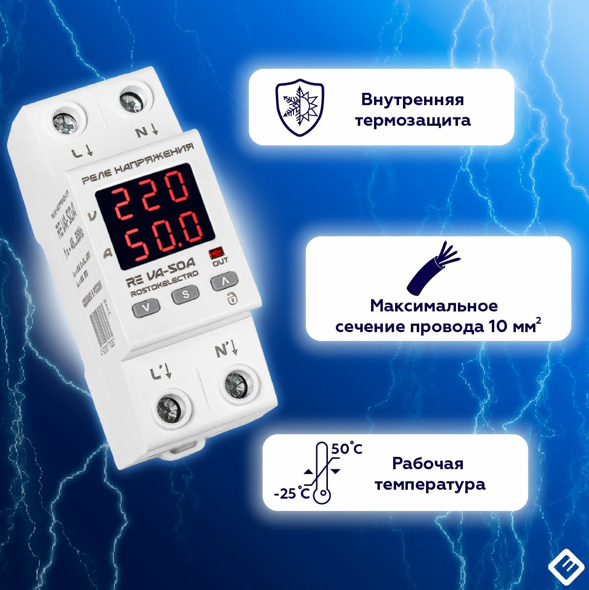 Реле напряжения Росток-Электро (бывш. DigiTop) с защитой от перегрузок по току RE серии VA предназначено для защиты электрического оборудования от скачков напряжения в сети, обрыва нулевого провода и превышения тока в цепи потребителей.
