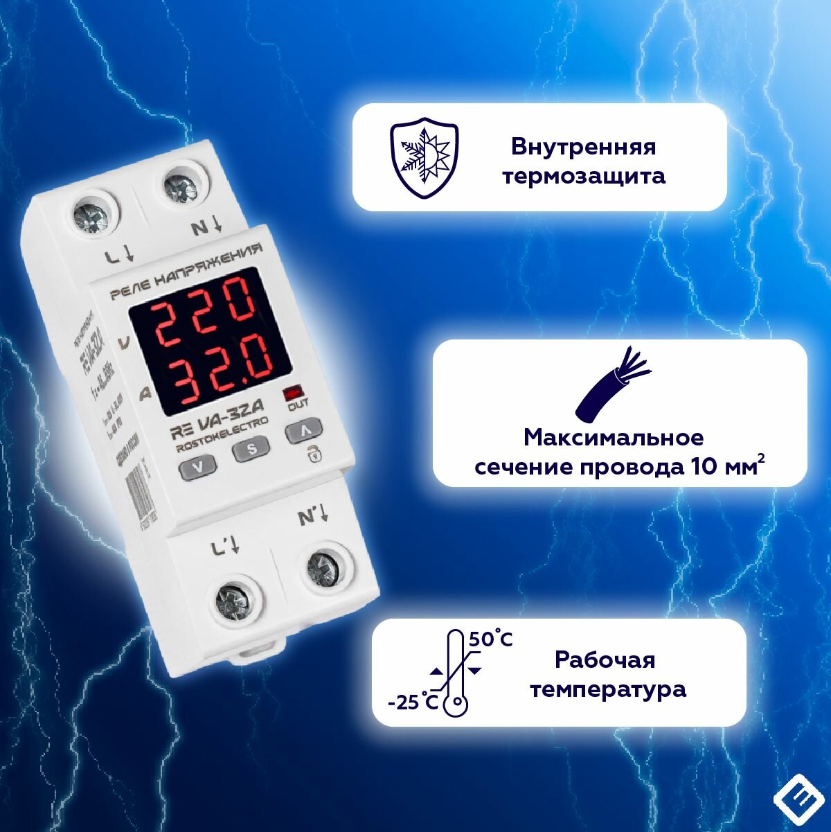 Реле напряжения Росток-Электро (бывш. DigiTop) с защитой от перегрузок по току RE серии VA предназначено для защиты электрического оборудования от скачков напряжения в сети, обрыва нулевого провода и превышения тока в цепи потребителей.