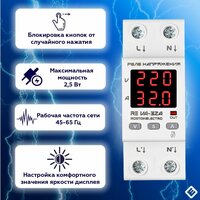 Измерительный блок на основе микропроцессора Microchip регистрирует и анализирует величину напряжения в сети, выявляя отклонения от установленных при настройке значений. При выходе показателей за эти пределы формируется сигнал на отключение и исполнительное устройство (реле с постоянно разомкнутым контактом для RE VA-32A, а для всех остальных – импульсное реле ) отключает нагрузку, тем самым предотвращая попадание на вход критических напряжений. Нагрузка включается автоматически после возвращения напряжения в установленный диапазон через установленный пользователем (по умолчанию 15 сек) промежуток времени.