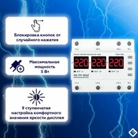 Прибор управляется микроконтроллером, который анализирует напряжение в трехфазной электросети и отображает действующие значения на цифровых индикаторах для каждой фазы. Коммутация выхода на нагрузку осуществляется электромагнитными реле. Питание прибора происходит от контролируемых фаз.