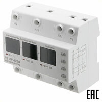 Предназначены для повышения надёжности питания однофазных потребителей от одной из фаз трёхфазной сети. Применяются там, где необходимо непрерывное питание напряжением, не выходящим за пределы допустимых норм, например в холодильных установках и кондиционерах воздуха, компьютерной сети, кабельном телевидении, системах безопасности. Программируемые настройки: - значение верхнего и нижнего пределов отключения по напряжению; - время задержки включения; - время задержки переключения по нижнему пределу; - время задержки возврата на приоритетную фазу; - приоритетная фаза. Измеряемое напряжение на каждой фазе: 50-400 В. Время переключения по верхнему пределу: не более 0,02 с. Время переключения по нижнему пределу (120В): не более 0,02 с. Контроль выхода от «залипания» контакта: есть. Верхний предел отключения/переключения (программируется): 210-270 (250**) В. Нижний предел отключения/переключения (программируется): 120-200 (170**) В. Приоритетная фаза (программируется): L1, L2, L3, OFF**. Время задержки включения нагрузки (программируется): 0-600 (0**) с. Время задержки переключения по нижнему пределу (программируется): 0-600 (0**) с. Время задержки переключения по нижнему пределу (программируется): 1-10 (1**) с. Время задержки возврата на приоритетную фазу (программируется): 5-120 (5**) с. Способ крепления: на монтажный профиль TS-35 (DIN-рейку 35 мм). Габаритные размеры: 90?105?67 мм. Температура эксплуатации: от -25 °C до +50 °C. Сертификат: ЕАС. Изготовитель: «Росток-Электро» Россия