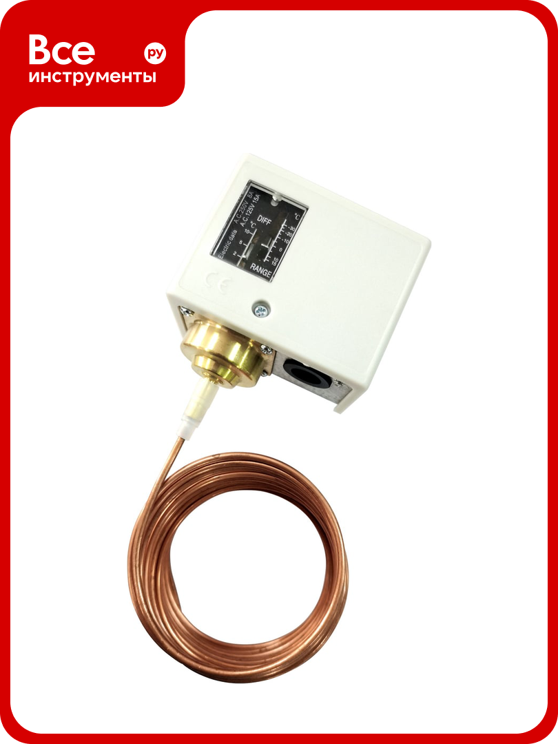 Диапазон настройки уставки -30…+15 °C Диапазон настройки гистерезиса 2…8 °C Заводская уставка срабатывание 7°C, возврат 12°C Температура эксплуатации -40…+65 °C Рабочая среда капилляра неагрессивные газы Точность срабатывания ± 1-1,5 °C Сброс (возврат в исходное состояние) Автоматический Тип чувствительного элемента Медная трубка Тип наполнителя капилляра Парообразный Длина капиллярной трубки 1, 2, 3, 4, 5, 6, 7, 8, 9, 10, 11, 12 метров Контактная система Перекидной контакт – SPDT Максимальная температура капилляра 120 °C Класс защиты (корпус) IP30 (IP42, IP55 с аксессуарами) Кабельный ввод Герметичный 5-10 мм
