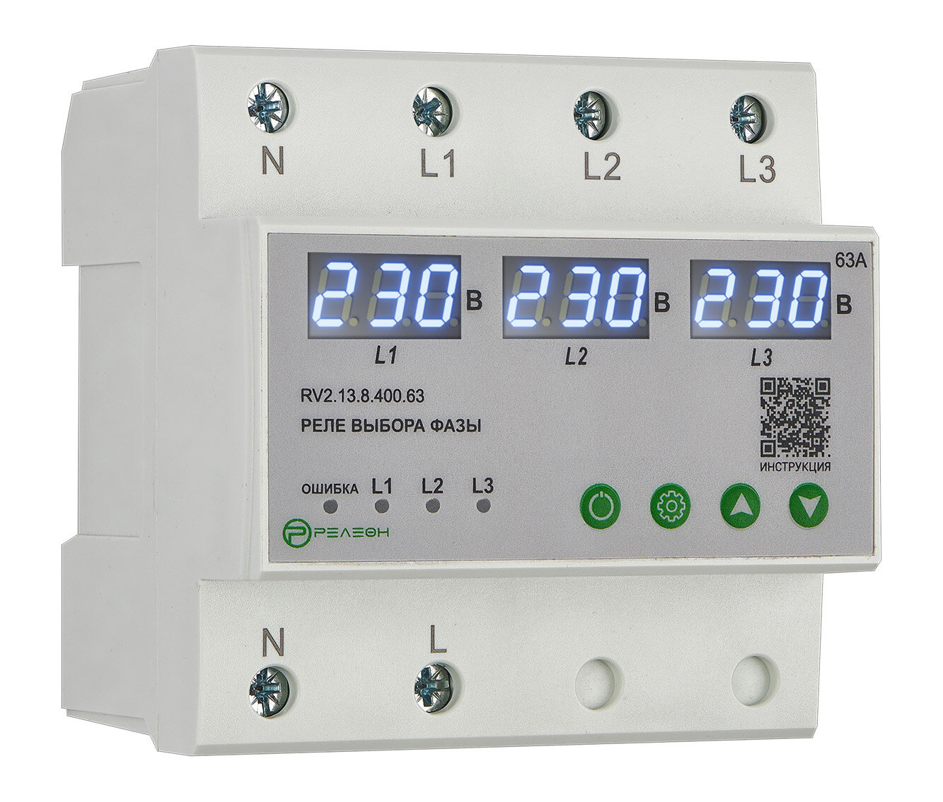 Купить Реле выбора фазы (400В AC), питание однофазных потребителей 230В 50Гц, РЕЛЕОН, RV2.13.8.400.63 с доставкой по всей России.