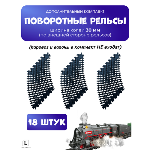 Поворотные рельсы Fenming Toys K1 представляют собой набор из 18 пластиковых поворотных рельс, предназначенных для использования с электрическими поездами. Они совместимы с моделями железной дороги, представленными в ассортименте нашего магазина, однако не гарантируют совместимость с паровозами и железной дорогой, приобретенными в сторонних магазинах.