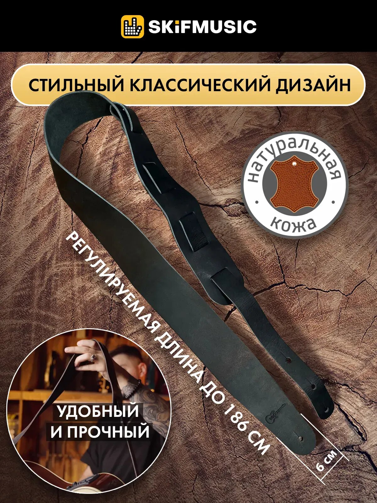 Гитарный ремень изготовлен из плотной натуральной кожи толщиной 3 мм. Вторым преимуществом гитарного ремня для электрогитары является регулируемая длина до 147 см, поэтому регулируемый гитарный ремень подойдет для гитариста любой комплекции, следовательно его можно подстроить под себя для удобства игры на струнном инструменте на концерте, дома, в поездках. Ширина гитарного ремня для акустической гитары составляет 6 см, он изготовлен из мягкой натуральной кожи, которая обработана и со внутренней стороны, прекрасно ложится на плечо, снижает нагрузку и не натирает во время использования. Гитарный ремень высокого качества универсален. Наконечники складного гитарного ремня изготовлены из высококачественной натуральной кожи, благодаря чему гитара всегда будет надежно зафиксирована.