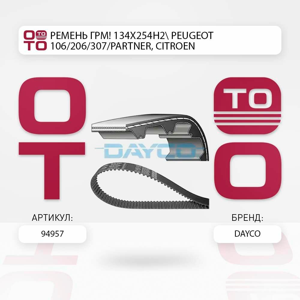 Ремень грм 134x254h2 peugeot ( пежо ) 106/206/307/partner, citroen ( ситроен ) c3/berlingo/xsara 1.6 16v 96>  Dayco 94957, 94957, 94957: сравнение цен, характеристики, фото, актуальное наличие и цены.