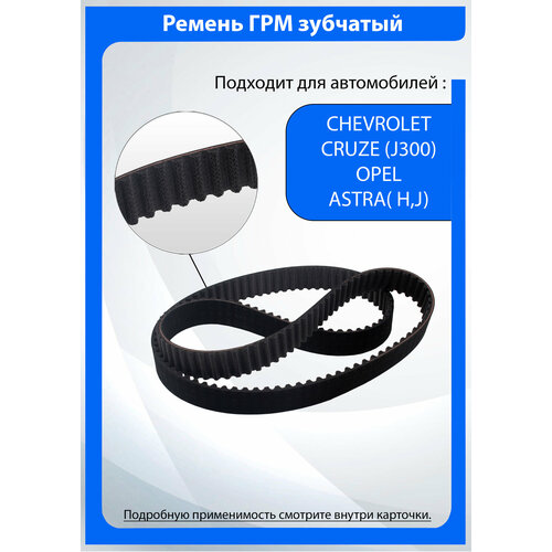 Ремень ГРМ подходит для различных моделей автомобилей, включая Chevrolet Aveo, Chevrolet Cruze, Chevrolet Orlando, Chevrolet Trax, Opel Astra, Opel Astra H, Opel Astra J, Opel Corsa, Opel Insignia, Opel Meriva, Opel Mokka, Opel Vectra, Opel Zafira.