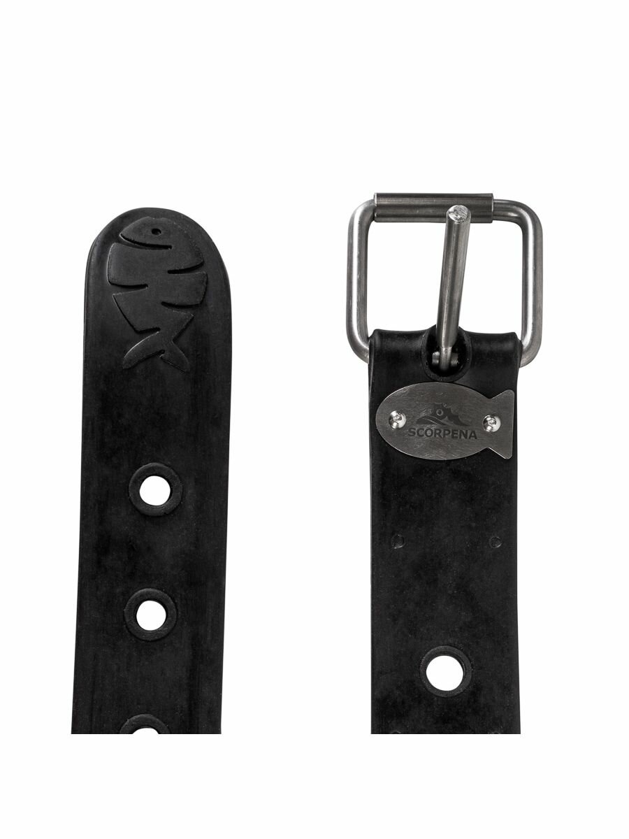 По праву занимает лидирующие место среди всех ремней этого направления. Благодаря совмещённым уникальным свойствам. А именно: безопасная пряжка марсельского типа, из нержавеющей стали; эластичный и в то же время прочный материал (химически стойкий полиуретан) обладающий противоскользящим эффектом, который предотвращает перемещение свинцовых грузов по поясу и движение всего ремня по телу пловца в момент нырка и всплытия.