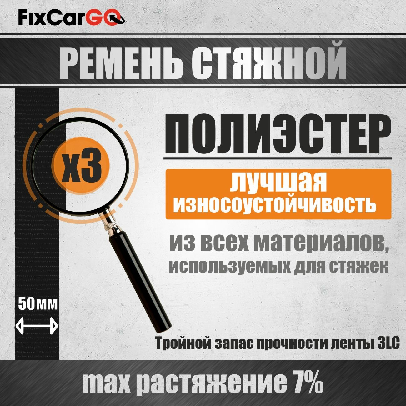 - Прочная лента ремня изготовлена из полиэстера (PES), разрывная нагрузка ленты более 3000 DaN (3000 кг), ширина ленты 50 мм;