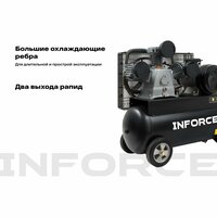 Ременной компрессор Inforce IBCW-100L-3P/950 - это высокопроизводительный профессиональный агрегат, оснащенный мощным двигателем на 5500 Вт. Эта модель применяется для сжатия воздуха и его подачи под давлением в пневмоинструмент. Контроль давления в ресивере и на выходе из него осуществляется с помощью двух манометров, предусмотренных в конструкции компрессора. Инструмент подключают к агрегату посредством байонетного соединения. Эффективное охлаждение. Цилиндры оснащены специальными большими ребрами, что увеличивает площадь теплоотдачи и способствует эффективному охлаждению. Защита от повреждений. Ременная система компрессора закрыта специальным решетчатым кожухом, защищающим ее от повреждений. Устойчивость. Четыре опорные ножки гарантируют устойчивое положение компрессора во время работы.
