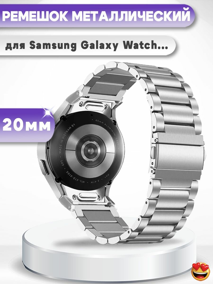Купить Ремешок 20 мм из нержавеющей стали для смарт-часов Samsung Galaxy Watch 4, 5, 5 Pro, FE 40мм — серебристый с доставкой по всей России.