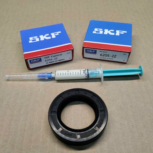 Комплект для ремонта бака стиральной машины. Подшипник 6204zz,6205zz сальник 35x56x10/11.5, смазка 2 мл .